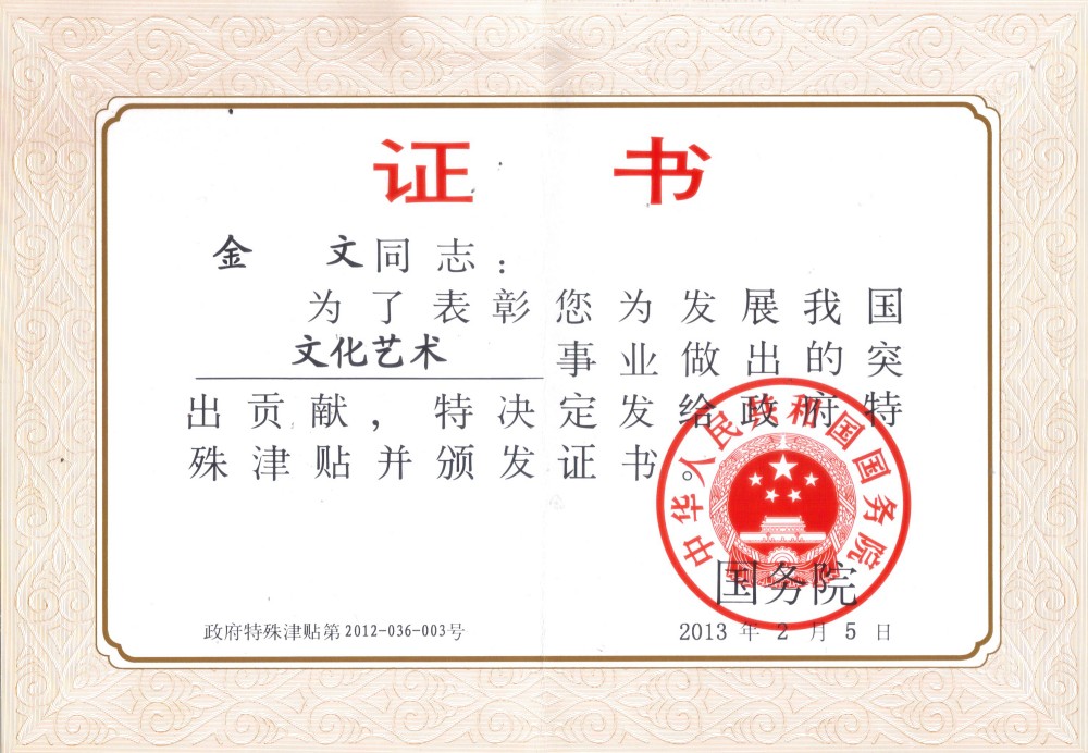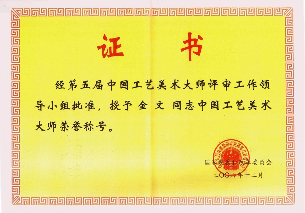 2012年,金文荣获中国文化产业金鼎奖“十大文化创意人物”,中国节庆产业“金手指奖”,以及创新工艺品牌“中国民族奢侈品耀世星光榜”。