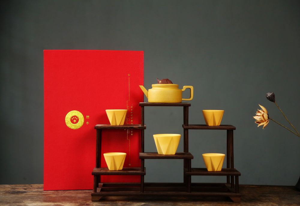 2021年07月 紫砂作品《开国大典》红色茶具,荣获2021年江苏省工美“艺博杯”银奖