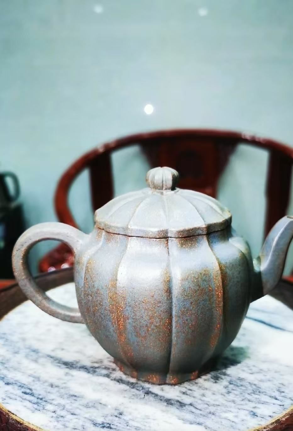 他为天星泥特制高温还原窑炉,精心驾驭窑内瞬息万变的温度。经历约1300摄氏度的多次反复锻烧,“每一次开窑,都像开启一个神秘的宝盒。”窑门开启时,奇迹诞生:壶坯竟幻化出天青、栗色、海棠红、墨绿等万千色彩,真是“进窑一色,出窑万彩”。泥料中的铁质在高温下析出,形成随机分布、灿若星辰的金属熔点,洒落壶身,构成每件作品独一无二的“星空图”。当第一把完美的天星泥壶出窑时,他知道所有的坚守都有了答案。