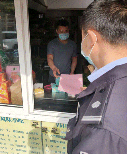 街道城管科工作人员给沿街商铺发放一封信宣传爱卫活动