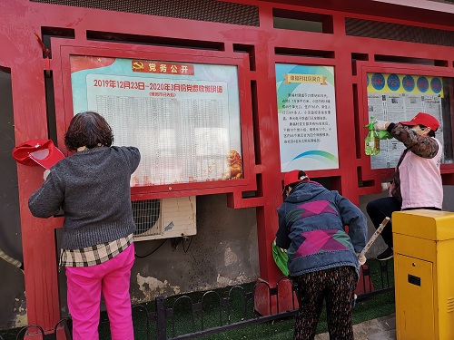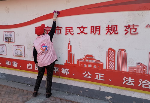 育英村支部书记纪红梅和党员黄建东在清理宣传栏时,看到熟悉的邻居时,便会主动招呼:“我们在打扫呢,过来搭把手啊?”把党员带动居民落到实处,将志愿服务的精神传递给更多人。