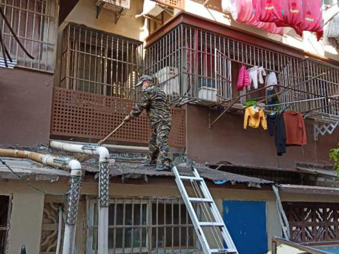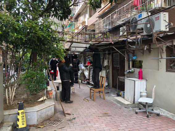 在社区领导的带领下,工作人员分成了若干小组,针对辖区内的各项重点卫生问题进行整治。艺苑社区是老旧小区,以西街头小区为例,在经过出新改造之后,小区环境已经有了很大的改观,但是仍然有许多卫生死角和遗留问题,如绿化带堆积杂物,一楼平台的杂物,违建等问题。协调过城管等部门之后,社区首先对西街头小区内的一楼部分违建进行了拆除。先后拆除了一楼雨蓬,葡萄架等违建,社区挨家挨户做好通知和安抚工作,解释了违建的危害以及拆除的必要性,居民都表示理解,配合相关的工作,拆除工作顺利进行。