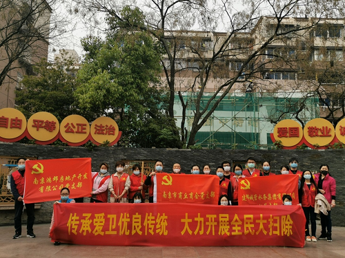 中国江苏网讯 自爱国卫生月活动启动以来,莫愁湖街道明园社区迅速行动,通过广泛发动,在辖区范围内掀起了“防疫有我,爱卫同行”环境整治提升工程的热潮。近期,社区充分发挥大党委的作用,通过吹哨报到机制,发动共建单位党组织、辖区单位党组织积极参与辖区关键整治行动。根据爱国卫生月环境整治工作要求,各党组织加入后重点攻坚小区环境卫生难点区域,如杂物集中堆放点、楼道牛皮癣、绿化死角等。