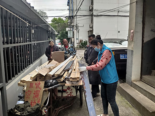 面对难题,4月23日,社区党员、志愿者以及工人等迎难而上,各组人员有序分工,有的负责清理楼梯间的杂物,有的负责清理夹道间的垃圾以及“僵尸车”,还有的负责清理违章建筑。经过多天的努力,上锁的“僵尸车”被拖运走,雨棚的垃圾被清扫干净……
