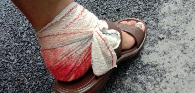7月19日下午2点左右,在市、区防汛办专家现场指导下,魏青树与同事们对莫愁泵站防洪墙的一处渗水点进行紧急处置。就在众人忙碌时,旁边半人多高的花瓶突然倒下来,碎裂的瓷片将魏青树的脚后跟划出一个大口子,当场鲜血直流。他将伤口简单处理了一下后,继续与同事们垒砌沙袋封堵渗水点,直到完成所有排险工作才回到家中对伤口进行涂抹消毒。第二天,他不顾伤口疼痛又继续上岗巡查值守,没有半点犹豫。排除险情,保障汛期安全,让辖区群众安心,是他始终坚守的初心。