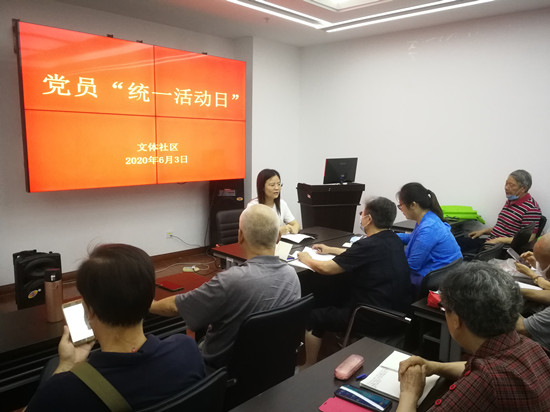 中国江苏网讯 6月3日上午九点半,文体社区开展了本年度第一次党员“统一活动日”活动。文体社区党委委员、各支部书记、支委成员参与会议,文体社区副主任高李秀主持会议。