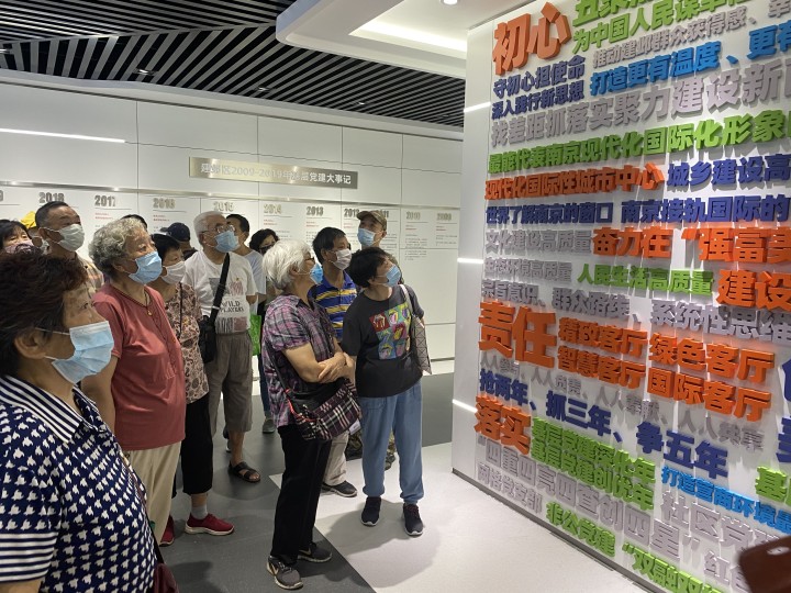 在专业讲解人员的陪同下,大家认真观摩学习了党建文化阵地。党员们通过观看一则则短视频生动清晰地了解了历年来在建邺区开展的党建工作。党建文化阵地紧紧围绕“不忘初心牢记使命”的主题,运用文字、图片等表现形式,展示了建邺区2009-2019年基层党建大事记、智慧党建信息、建邺区的发展沿革、“总部企业风采”、“锦绣建邺”等丰富多彩的内容。大家认真听取了建邺区党建工作亮点介绍,亲身感受了浓厚的党建文化氛围。